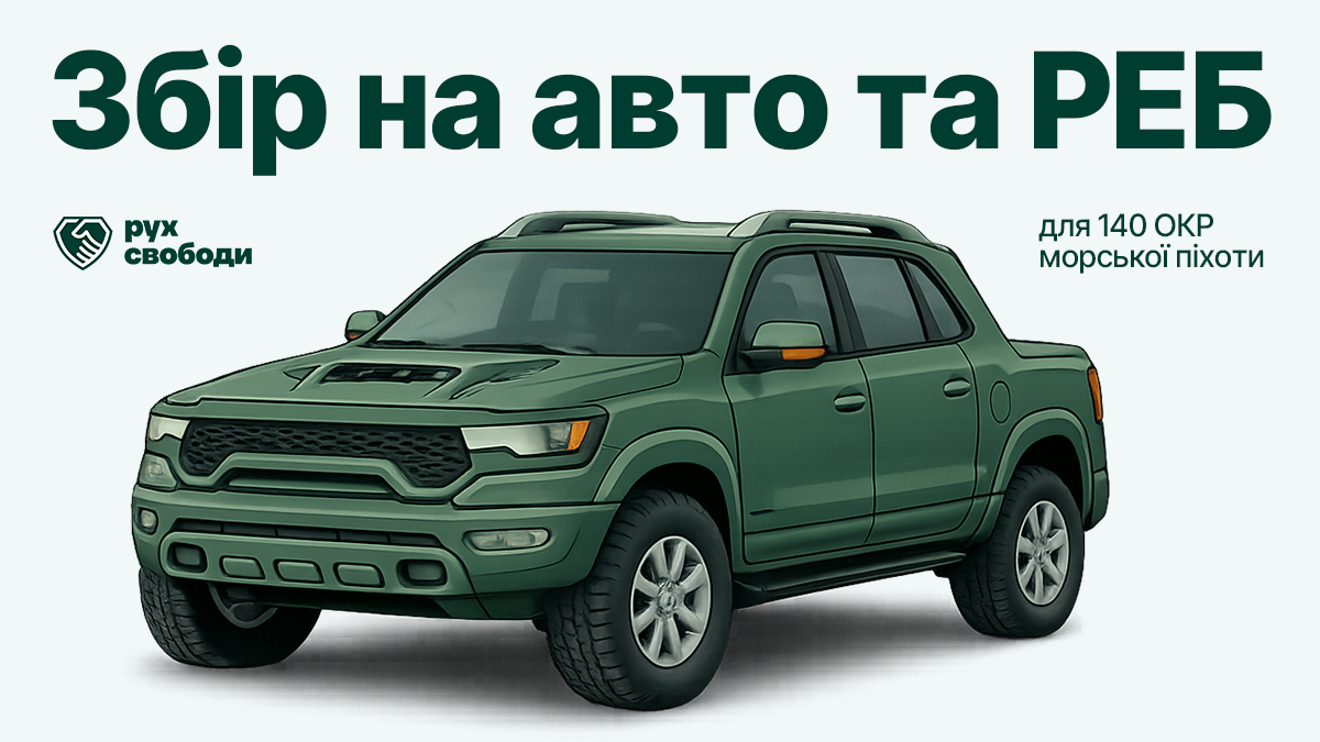 Допомагаємо ЗСУТвоя підтримка важлива!Підтримати Активні збори Авто та РЕБ для 140 ОРБ Морської піхотиЗбираємо кошти на автомобілі та системи РЕБ для виконання бойових задач підрозділу. Кожен донат важливий! 60 211 ₴ з 1 200 000 ₴5% Підтримати Результати вашої підтримки! Передали Ford Ranger для 140-го окремого розвідбату морської піхоти 22.10.2025 Передали авто для 36-ї окремої бригади морської піхоти. 23.09.2025 Передали автомобіль Ford Ranger для 140-го окремого розвідувального батальйону морської піхоти. 28.08.2025 Передали Mitsubishi L200 для БпАК “Каратель” 116 ОМБр. 18.08.2025 Передали чотири Starlink для 92-ї бригади! 22.07.2025 Цього разу нам вдалося передати важливу допомогу для взводуБпАК “Каратель” 116 ОМБр 24.01.2025 Передали Ford Ranger та електропилу Alpha для 92-ї окремої штурмової бригади імені кошового отамана Івана Сірка, зокрема для 2-го штурмового батальйону. 19.01.2025 Автомобіль для служби турботи 126-ї бригади! 19.01.2025